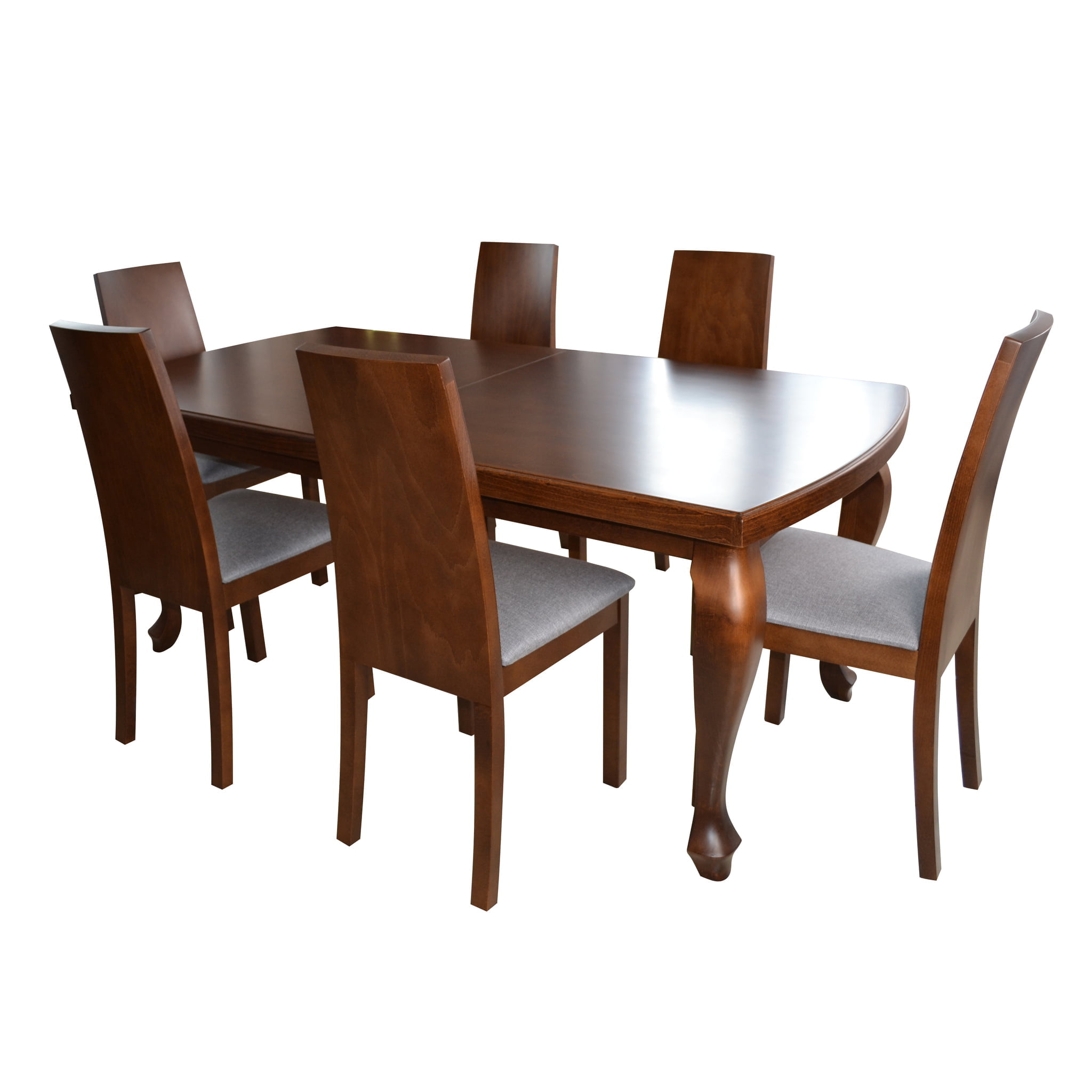Komplet jadalniany Apollo składa się ze Stołu rozkładanego w zależności od potrzeb o 1 lub 2 wkładki, każda po 40cm. Nogi w stylu ludwikowskim zostały wykonane z litego drewna bukowego, blat okleinowany naturalnym fornirem bukowym, zalakierowany lakierem poliuretanowym dwuskładnikowym odpornym na ciepło i alkohol.