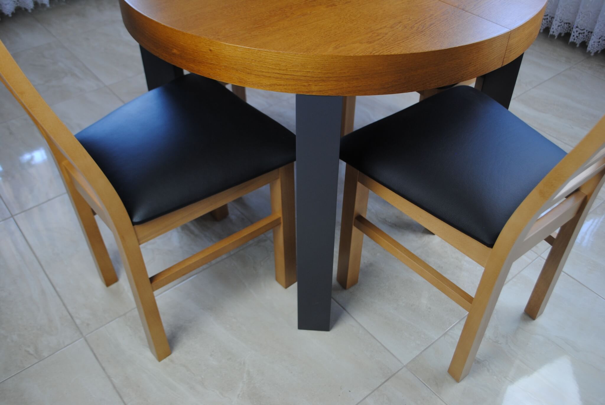 W skład kompletu zaliczają się również krzesła Leopard, które zostały wykonane z myślą o wielbicielach komfortu oraz stylowego, eleganckiego wyglądu. Świetnie zaprezentuje się w jadalni lub salonie, które są jednymi z ważniejszych pomieszczeń w naszych domach. Krzesła muszą być trwałe a przede wszystkim wygodne. Nasza propozycja spełnia oba te zagadnienia. Krzesło zostało wykonane z litego drewna bukowego, cechuje je trwałość a polakierowane wysokiej jakości lakierem dwuskładnikowym sprawia, że jego utrzymanie w czystości jest bardzo proste. Ergonomicznie wyprofilowane oparcie pozwoli wygodnie oprzeć plecy, natomiast tapicerowane siedzisko zapewni nam wysoki komfort użytkowania.
