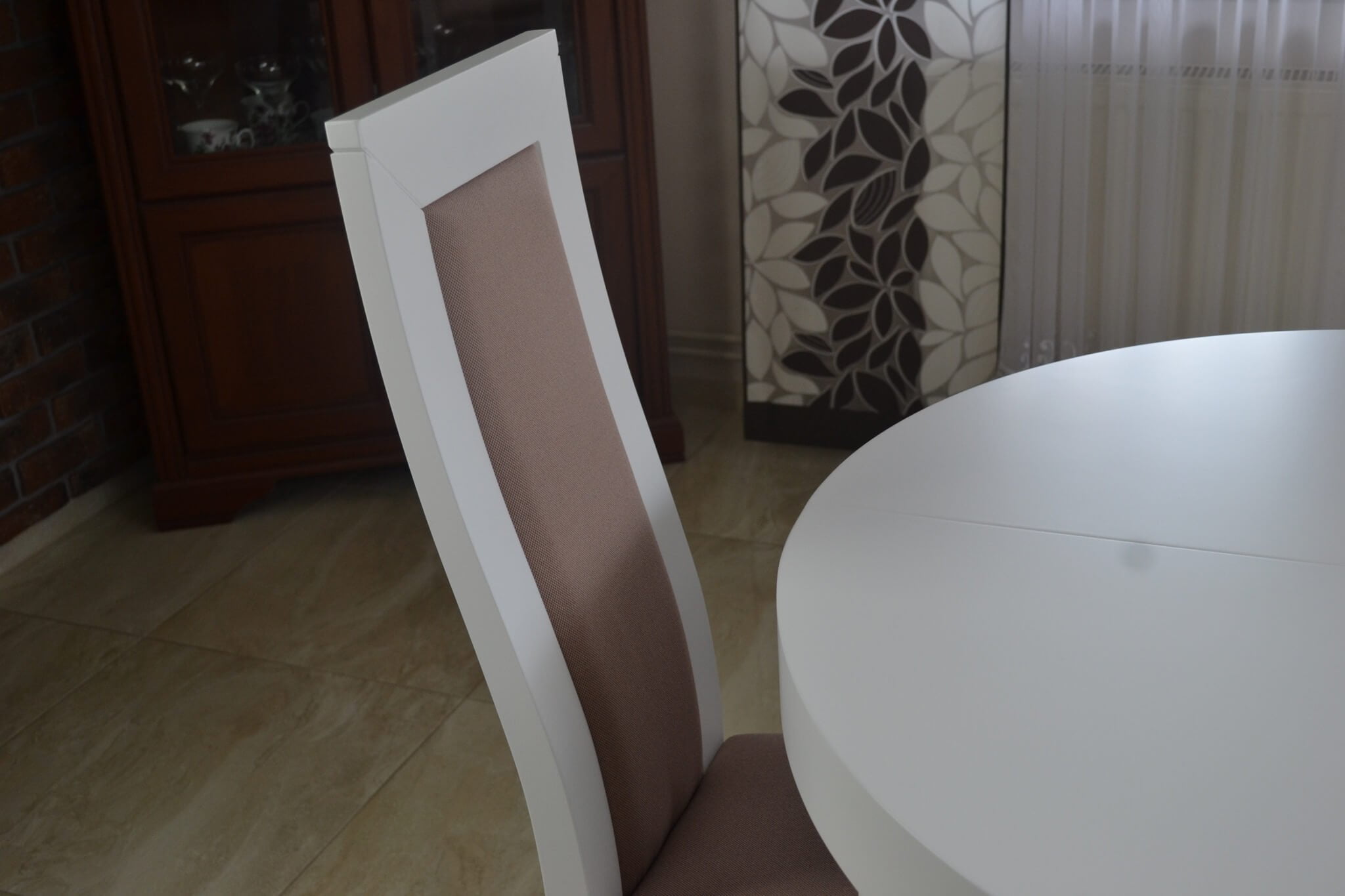 W skład kompletu zaliczają się również krzesła Frida, które zostały wykonane z myślą o wielbicielach komfortu oraz stylowego, eleganckiego wyglądu. Świetnie zaprezentuje się w jadalni lub salonie, które są jednymi z ważniejszych pomieszczeń w naszych domach. Krzesła muszą być trwałe a przede wszystkim wygodne. Nasza propozycja spełnia oba te zagadnienia. Krzesło zostało wykonane z litego drewna bukowego, cechuje je trwałość a polakierowane wysokiej jakości lakierem dwuskładnikowym sprawia, że jego utrzymanie w czystości jest bardzo proste. Ergonomicznie wyprofilowane oparcie pozwoli wygodnie oprzeć plecy, natomiast tapicerowane siedzisko zapewni nam wysoki komfort użytkowania.