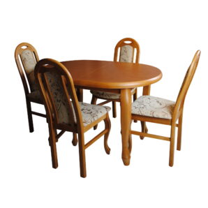 Siedzisko: Płyta meblowa, lite drewno sosnowe, pianka tapicerska, owata tapicerska