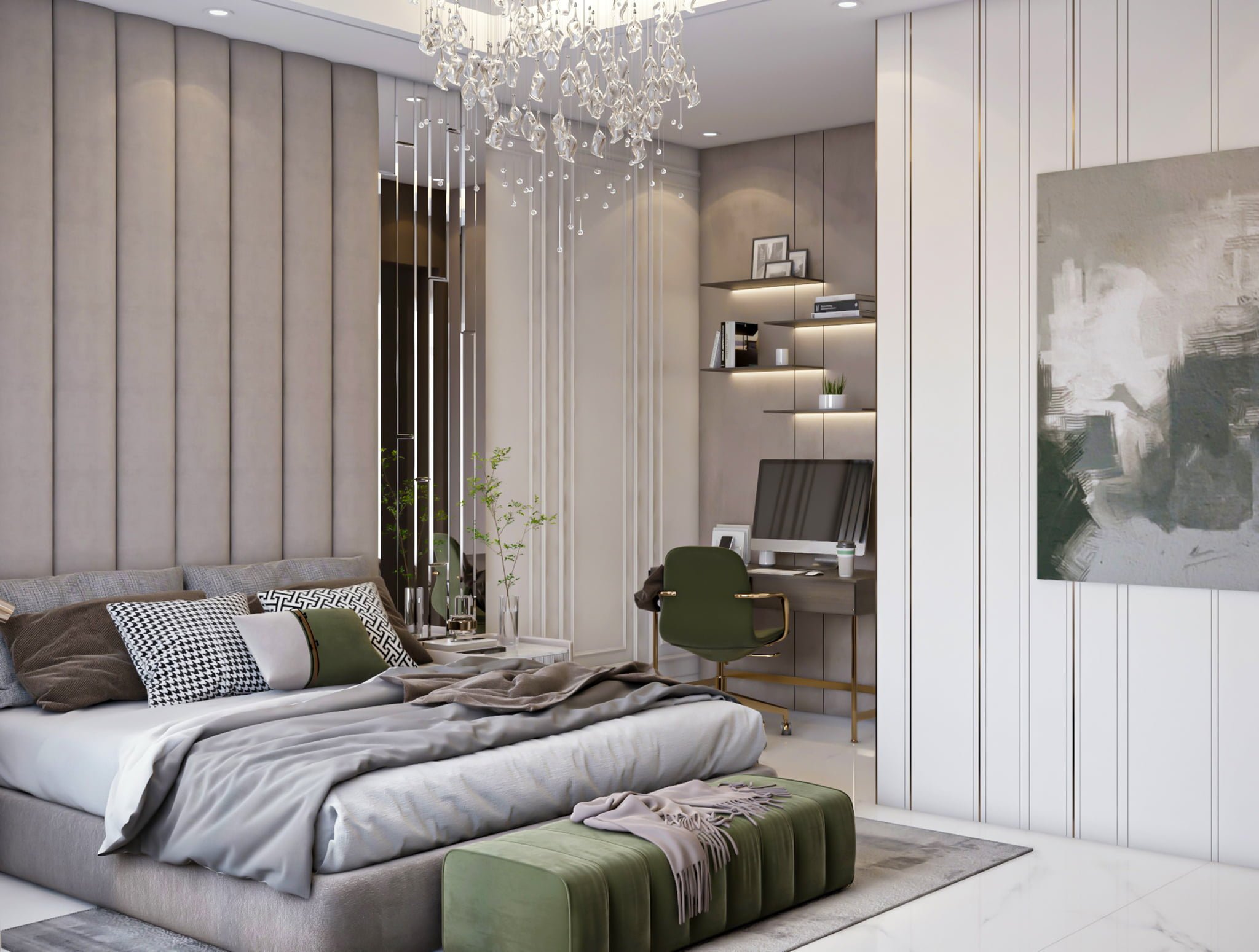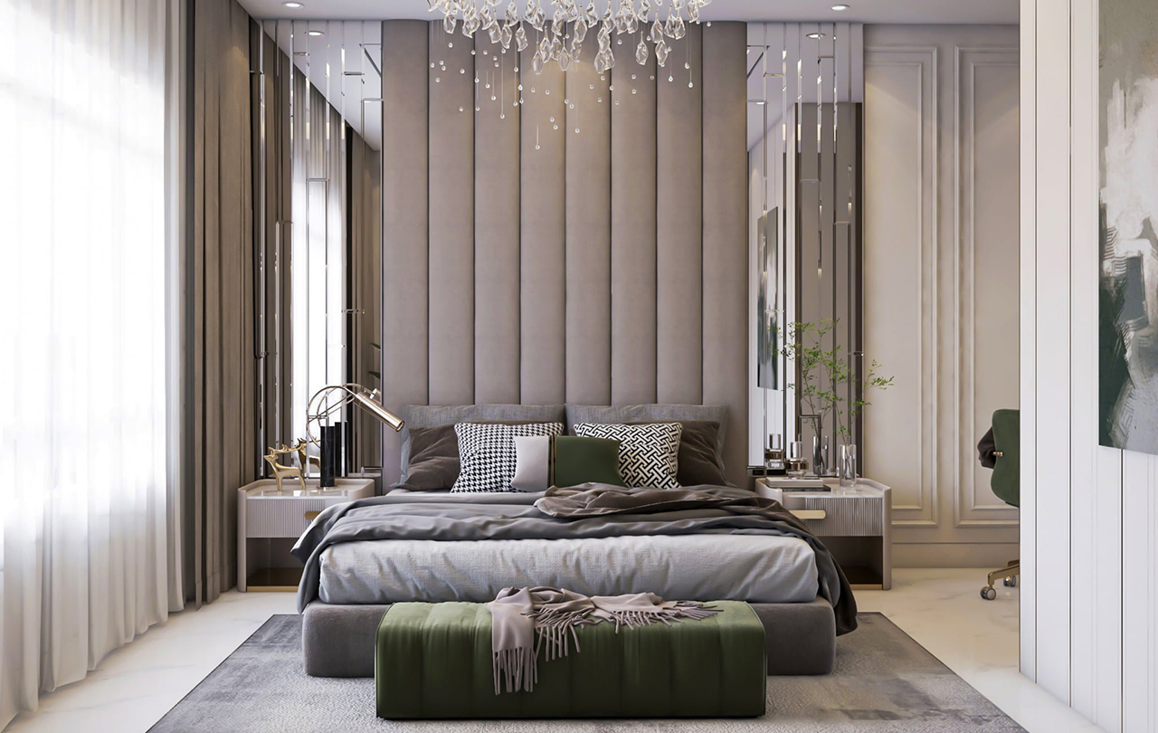 Ponadczasowe, ręcznie robione łóżko tapicerowane szczyci się wysoką jakością wykonania. Począwszy od stalowego stelaża pod materac po luksusowy zagłówek tapicerowany w pionowe pasy, wszystko wykończone zgodnie z najwyższymi standardami.