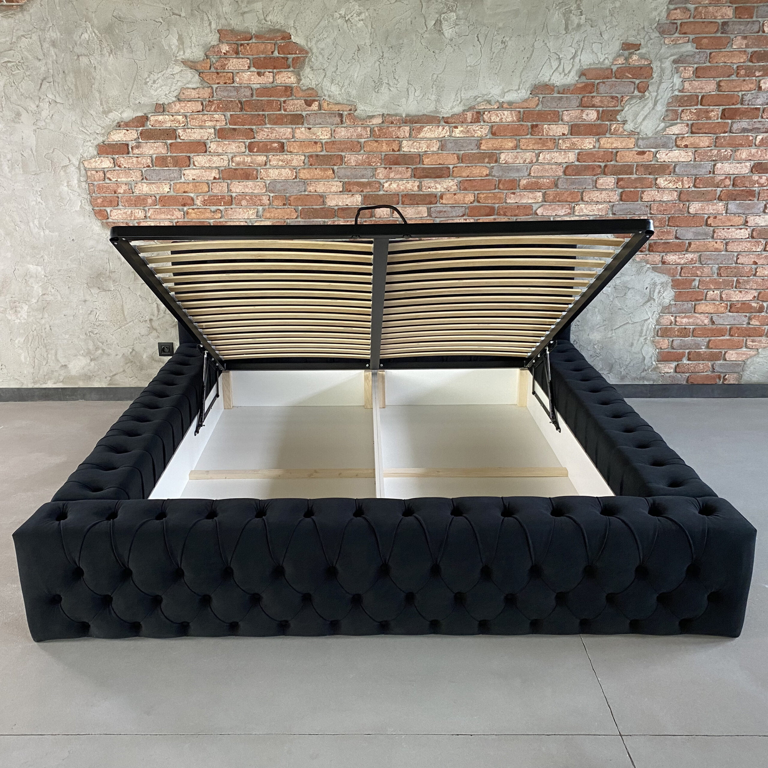 Nasze łóżko tapicerowane zostało wykonane z najwyższej jakości materiałów, co gwarantuje jego trwałość i wytrzymałość. Całe łóżko jest otwierane do góry od frontu, co ułatwia dostęp do jego wnętrza i umożliwia przechowywanie różnych przedmiotów wewnątrz.