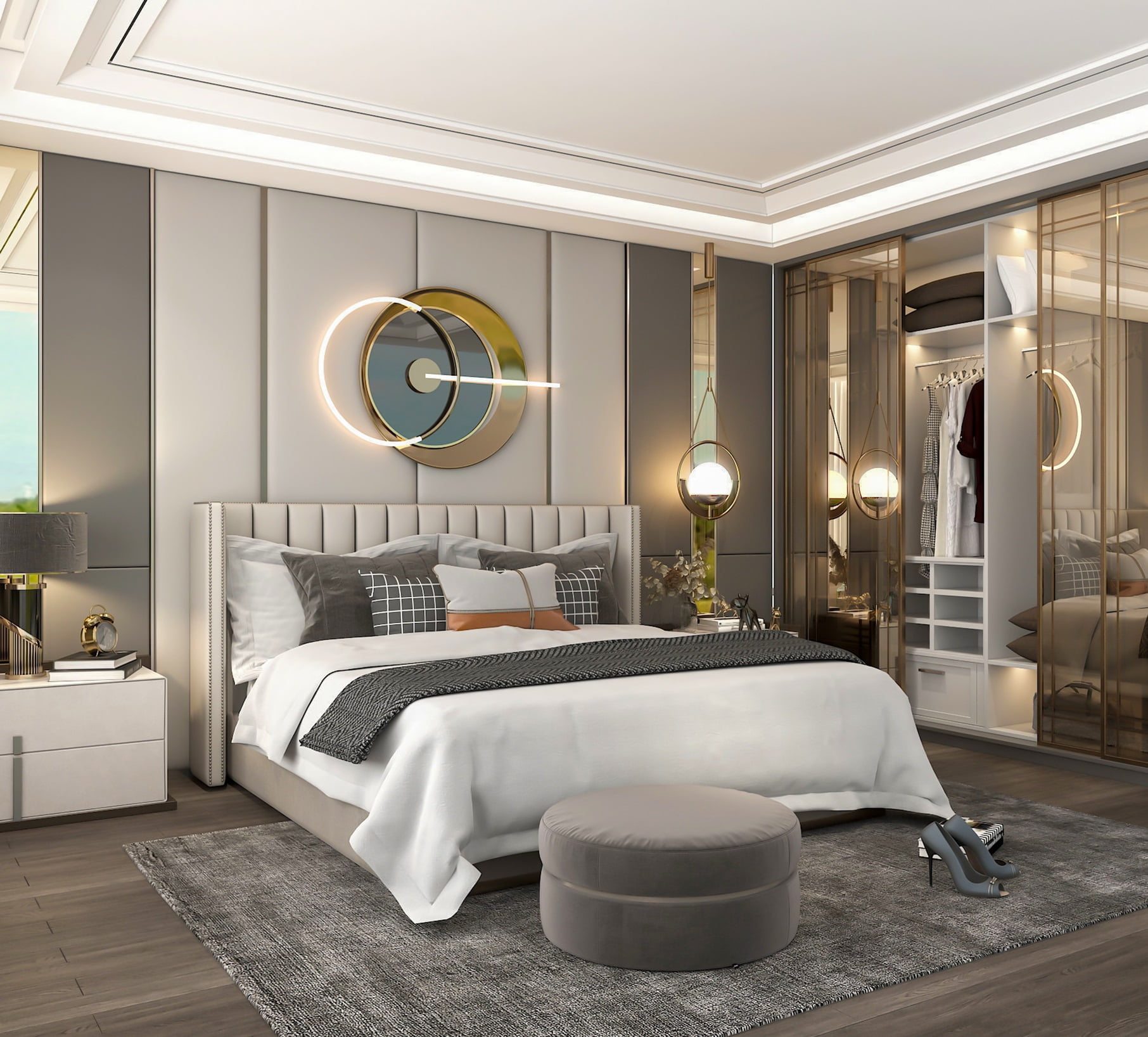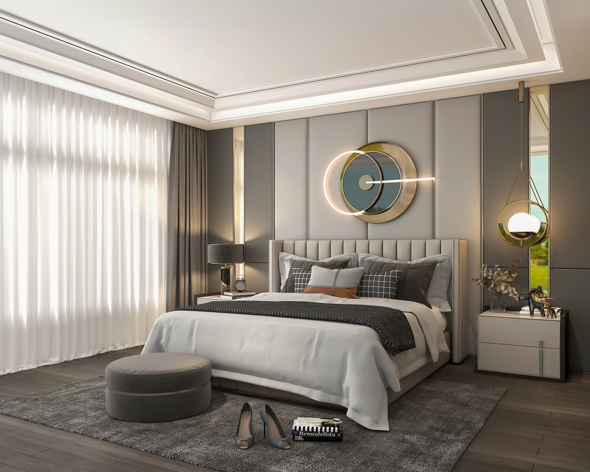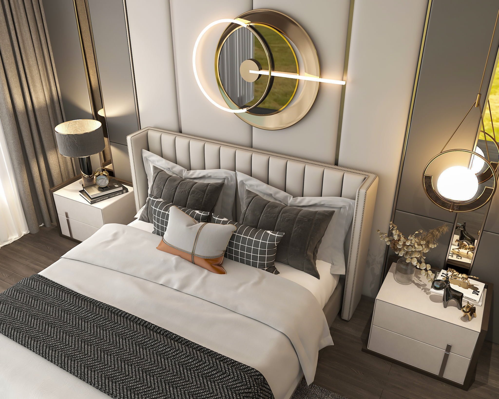 Ponadczasowe, ręcznie robione łóżko tapicerowane szczyci się wysoką jakością wykonania. Począwszy od stalowego stelaża pod materac po luksusowy zagłówek tapicerowany w pionowe pasy, wszystko wykończone zgodnie z najwyższymi standardami.
